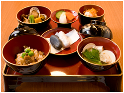太助では男の子には朱色膳、女の子には黒朱色膳にて「百日膳」(一汁三菜と御目出鯛の御頭)をご用意いたします。